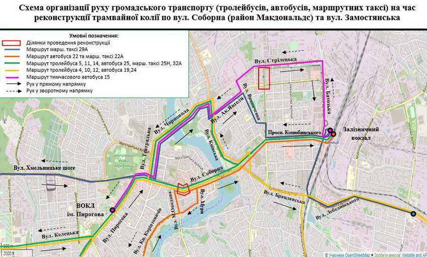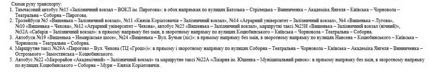 Серед них тимчасовий автобусний маршрут №15 «Залізничний вокзал – Лікарня ім. Пирогова».