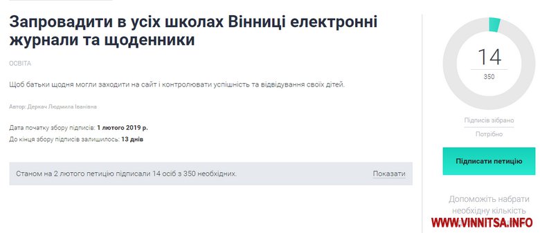 На сайті до Вінницької міськради зареєстрували петицію, в якій пропонують запровадити у школах електронні журнали і щоденники.