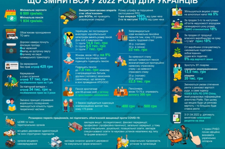Кілька важливих змін у 2022 році стосуватимуться податків. Зокрема, передбачені такі зміни: