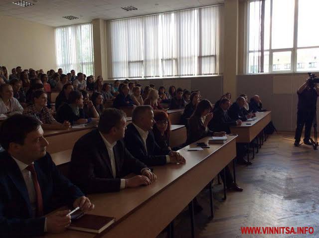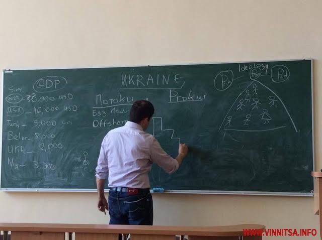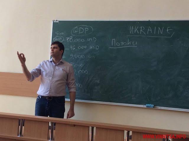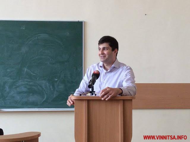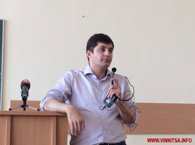 11 травня екс-заступник Генерального прокурора України та колишній прокурор Одеської області Давид Сакварелідзе приїхав до Вінниці на зустріч зі студентами Вінницького педагогічного університету. В аудиторії зібрали студентів різних курсів та факультетів. Після 40-хвилинного очікування на «лектора», грузинський реформатор почав свій виступ із запитань: що заважає Україні стати успішною, чому в країні немає політичної волі і як Україну вивести на гідний рівень. Колишній прокурор свою «лекцію» розпочав з прикладу розвитку інших країн – Туреччини, Сінгапуру та супроводжував її малюнками на дошці. Сакварелідзе розказував студентам, на прикладі роботи прокуратури, як можна побороти в Україні корупційні схеми та кілька раз повертався до основної проблеми – відсутність ідеології у «верхівці», серед управлінців країною. За його переконанням, основна причина всіх проблем в країні – відсутність жорсткого покарання за корупцію і не доведення справ по корупційних схемах до виходу на високопосадовців, які ці схеми організовують.
