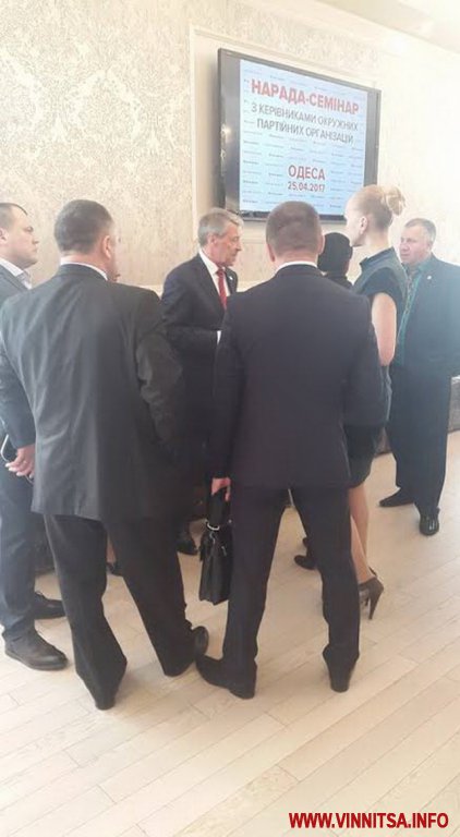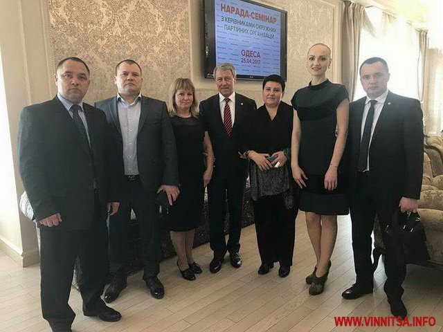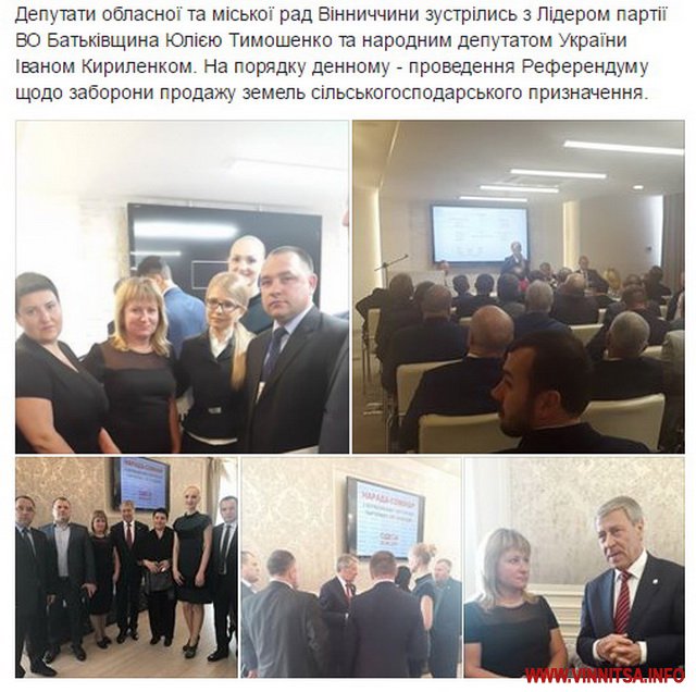 Депутат Вінницької облради з «Оппоблоку» Юрій Яремчук з’ясував, що 25 квітня 2017 року перший заступник голови облради Людмила Щербаківська разом з головою постійної комісії з питань бюджету, фінансів та обласних програм та депутатом від «Батьківщини» Геннадієм Мазуром начебто з робочим візитом поїхали в Одеську облраду. Візит не планувався заздалегідь. 26 квітня в соцмережах з’явились світлини вінничан з лідерами партій – Ю. Тимошенко та І. Кириленком. Саме в той час в Одесі проходила «закрита» нарада керівного складу «Батьківщини» щодо проведення референдуму по продажу землі. Оскільки бути одночасно у двох різних місцях неможливо, Юрій Яремчук вважає, що його колеги вирішували партійні питання. Справа в тому, що Л. Щербаківська та Г. Мазур є посадовими особами облради. Відрядження до партійних лідерів немає сплачуватися з коштів обласного бюджету та могло бути завуальоване під поїздку до іншої облради.