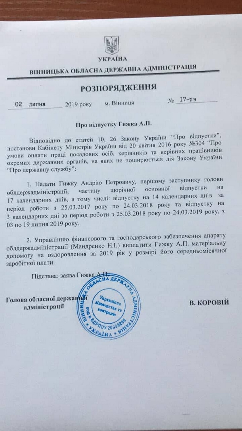 Чорним піаром вважає подібні закиди й перший заступник голови Вінницької ОДА Андрій Гижко, який балотується по округу №11знаходжусь у відпустці згідно вимог законодавства і буду знаходитись під час всього виборчого процесу! А взагалі – у нас є ті організації, яким вірить громадськість та міжнародні спостерігачі. Візьміть фаховий коментар в «ОПОРИ» – це буде чесно!», - зазначив Андрій Гижко.