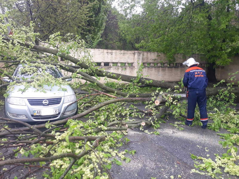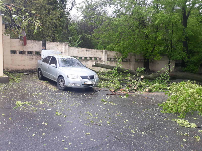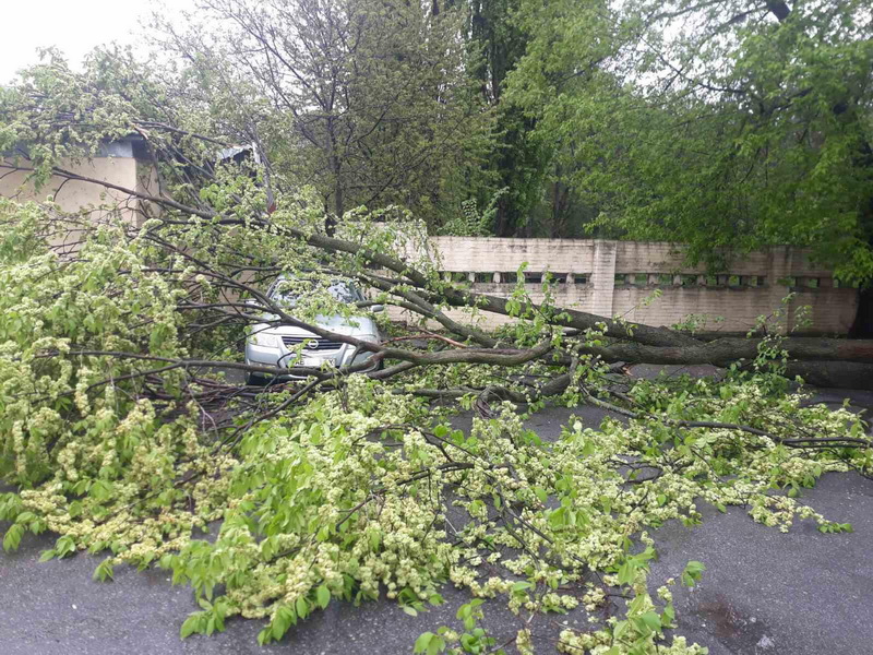 Того ж дня о 12:50 до рятувальників надійшло повідомлення про те, що у Вінниці на вулиці Пирогова, 43, внаслідок погіршення погодних умов дерево впало на автомобіль.