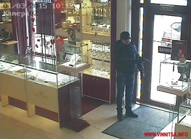 Побачивши озброєних нападників, продавці магазину сховалися у підсобному приміщенні. Зрозумівши, що продавці могли натиснути тривожну кнопку виклику міліції, зловмисники відібрали у 45-річного приватного охоронця магазину пристрій для відстрілу гумових куль марки «Форт-12 Р» та втекли з місця пригоди. Злочинці перебували в магазині півхвилини.