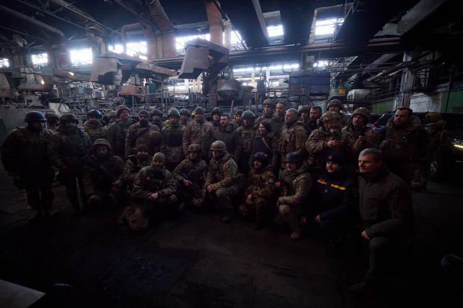 «Глава держави відвідав передові позиції однієї з механізованих бригад, особовий склад якої протистоїть ворогу на підступах до міста.