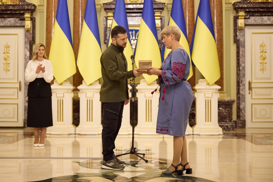 «Попри окупацію вона виховує своїх учнів патріотами, не боїться казати їм правду, організовувала проукраїнські мітинги в окупації, незважаючи на погрози та насильницькі дії загарбників. Відео, де вона, загорнувшись у прапор України, вимагає від міжнародної спільноти рішучіших дій, потрапило майже в усі світові ЗМІ та соцмережі. Мільйони людей на планеті почули: Мелітополь – це Україна», – наголосив Глава держави.