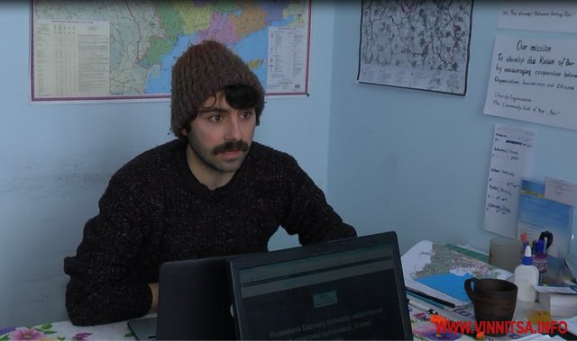 При вході до нас приєднується Роман Мочарний. Викладач Барського педагогічного коледжу з спеціальності живопис. Він також волонтер. Спільно працюють у благодійній організації «Фонд громади 'Барі».