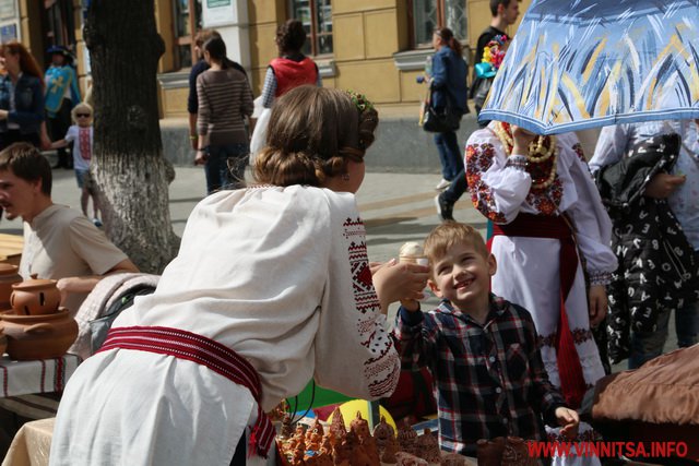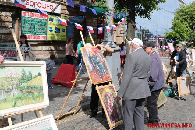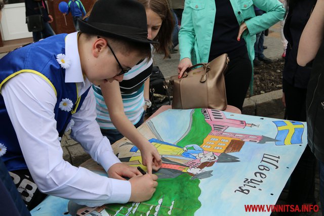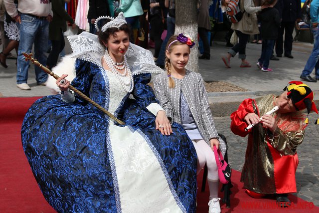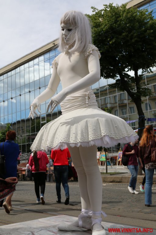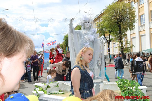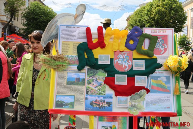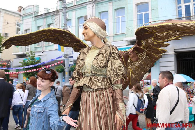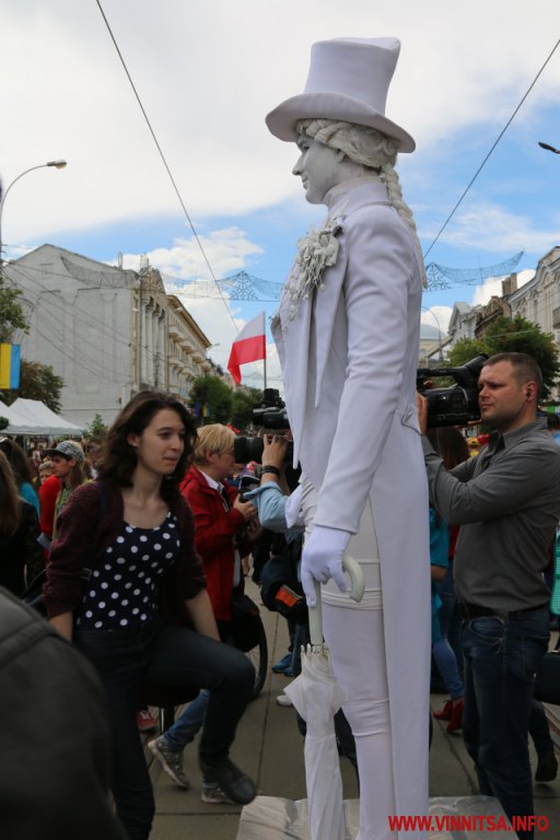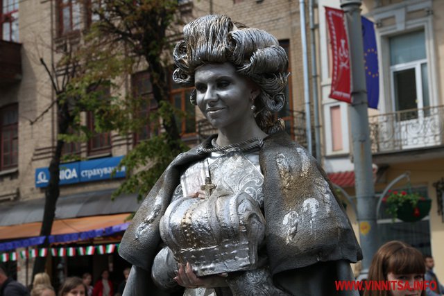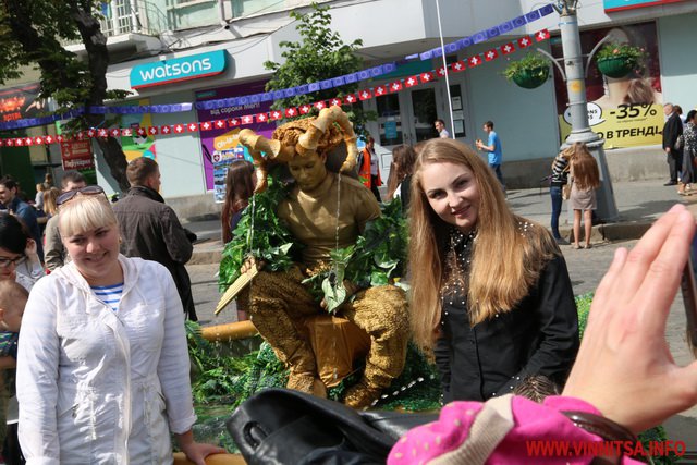 На Соборній від Майдану Незалежності до Театральної - живі статуї, фонтани, картини, майстер-класи, оркестри та музиканти. Вінничани знайомляться з традиціями Європейських країн, зупиняючись біля стендів, де їх зустрічає молодь в традиційному вбранні тієї чи іншої країни.