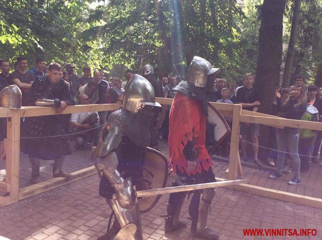 Біля вежі проходять рицарські бої, де змагаються учасники з різних міст України. Тем же кожен може спробувати смачний борщ чи бограч.
