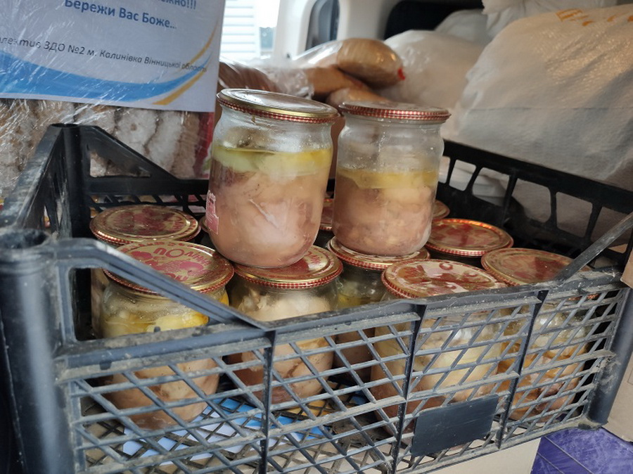 Квашені огірки та помідори, оселедці, солодощі, хлібці, м’ясні консерви, захисні сітки та інші необхідні для військових речі – черговий гостинець від Калинівської громади з Вінниччини знову відвезли калинівським нацгвардійцям.