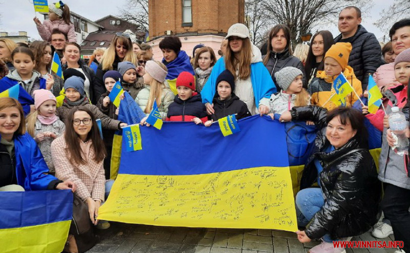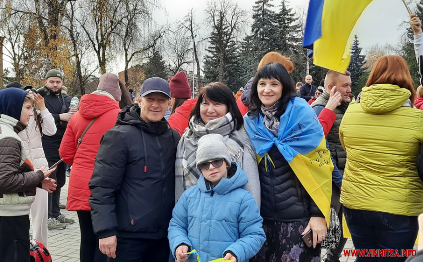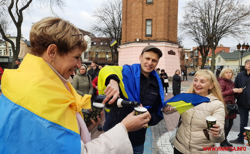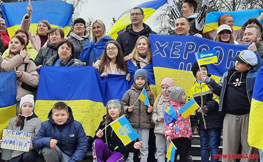 Херсонці, які через російську агресію були змушені переселитися на Вінниччину, сьогодні зібралися у центрі Вінниці, аби відсвяткувати визволення від російських загарбників рідного міста.