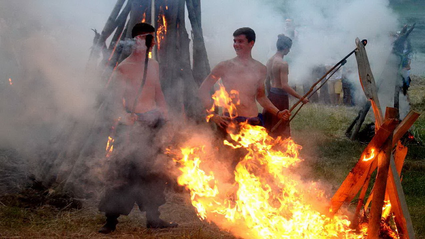 Цьогоріч дизайнери заходу приготували унікальні вогняні локації — дорогу з палаючими факелами та символічний вогняний знак на воді.