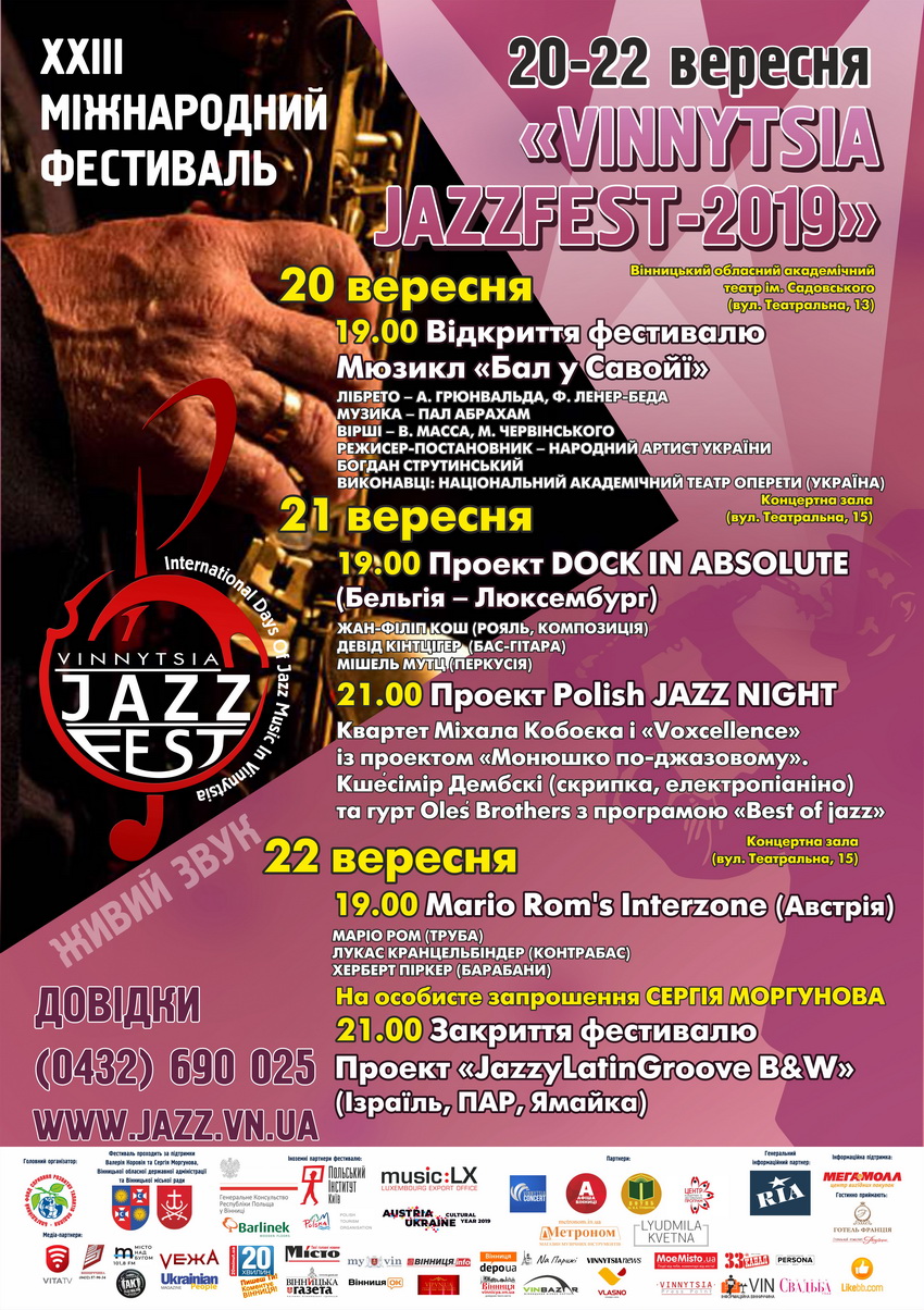 Це буде один із багатьох сюрпризів грандіозного ХХІІІ міжнародного джазового фестивалю VINNYTSIA JAZZFEST-2019, який з 20 по 22 вересня збере у Вінниці найкращих джазменів із 8 країн, на відкритті вразить показом легендарного мюзиклу «Бал у Савойї», а у фіналі подарує усім всесвітню прем’єру проекту «Jazzy Latin Groove B & W» від зірок першої величини, які на особисте запрошення Вінницького міського голови Сергія Моргунова дадуть єдиний концерт в Україні.