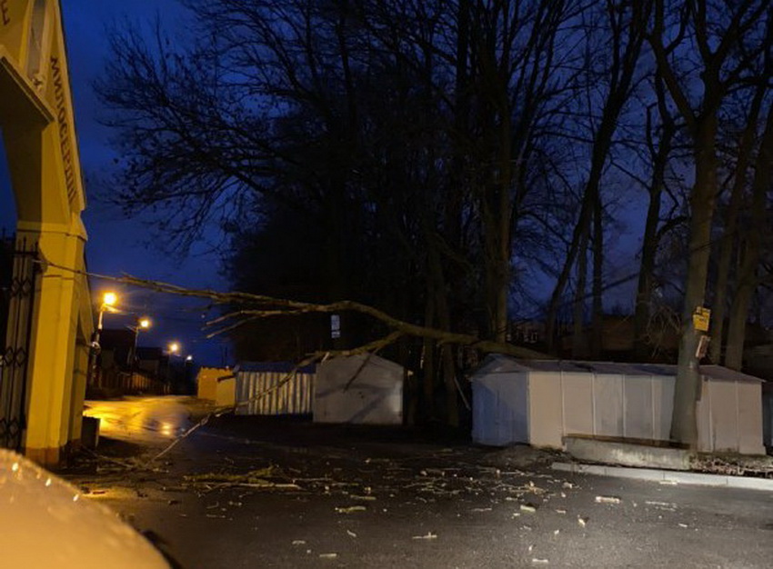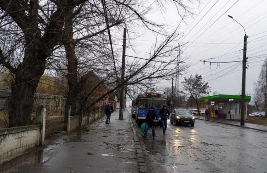 У Вінниці на вулиці Чехова дерево впало на контактну мережу тролейбусної лінії. На цій же вулиці вітер пошкодив тролейбусну зупинку.
