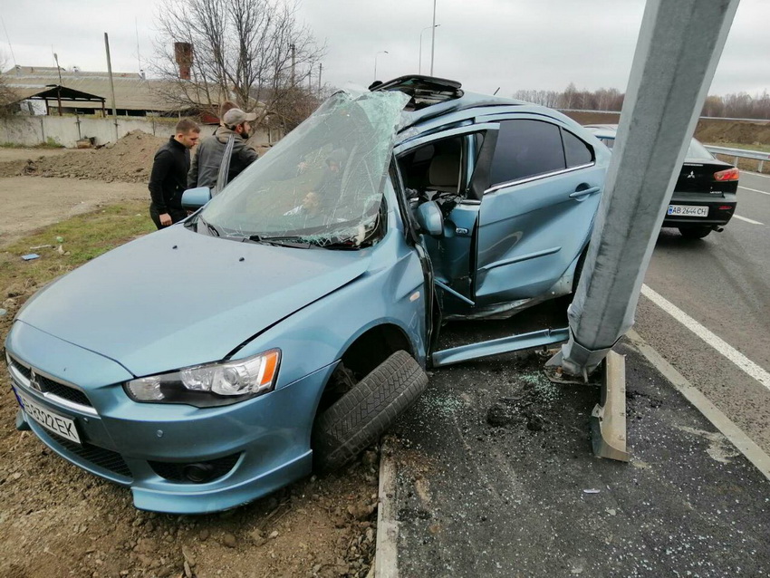 При виїзді на Тиврівське шосе, поблизу села Вінницькі Хутори, 21-річний водій автомобіля Mitsubishi не впорався з керуванням допустив зіткнення зі стовпом. Під час аварії постраждав власник машини, його госпіталізували до лікарні.