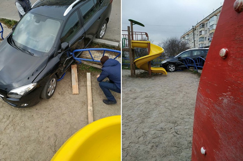 У Вінниці на вулиці Якова Гальчевського Renault заїхав на дитячий майданчик. Коли на місце події прибули патрульні поліцейські, то машини там не застали. А паркан майданчика був відремонтований.