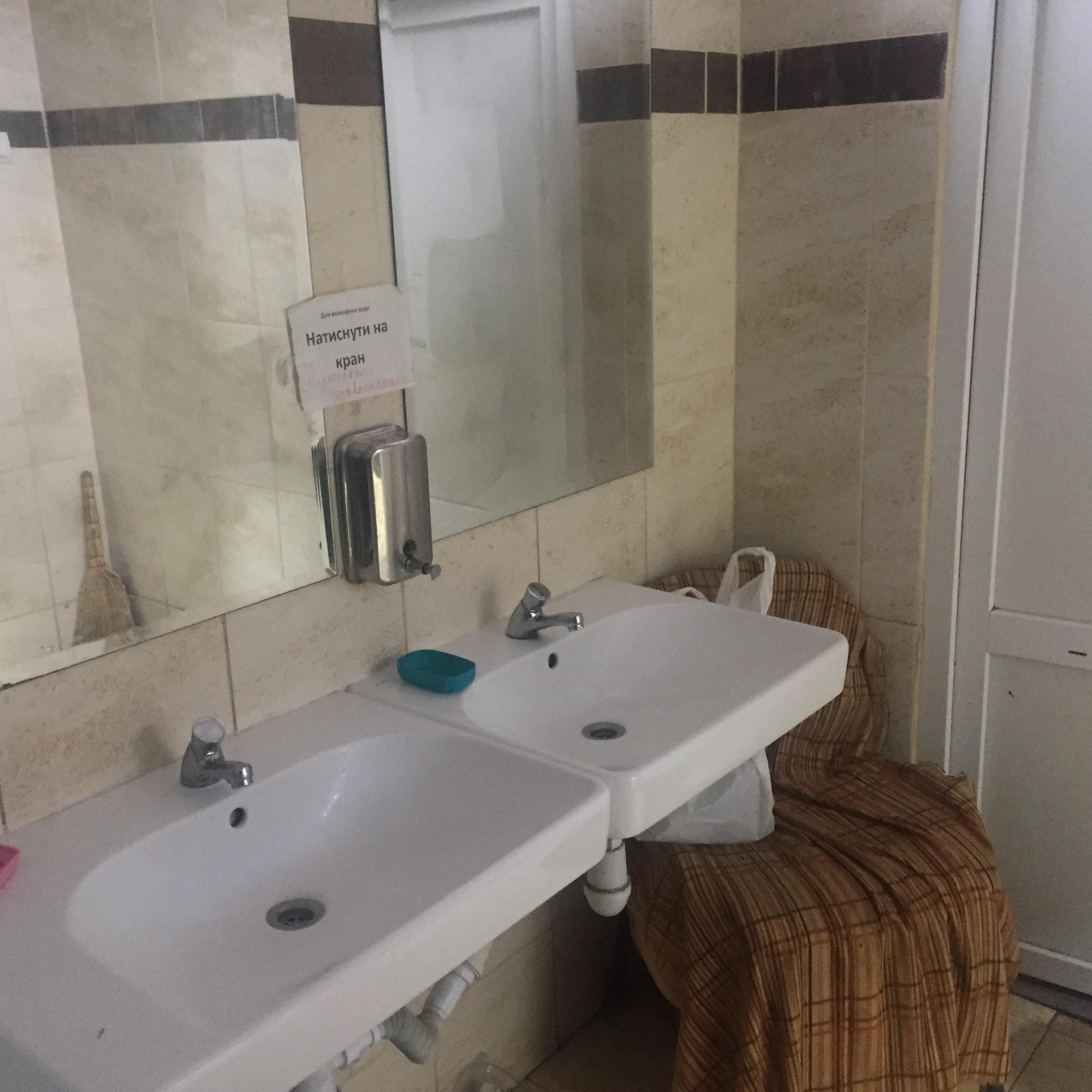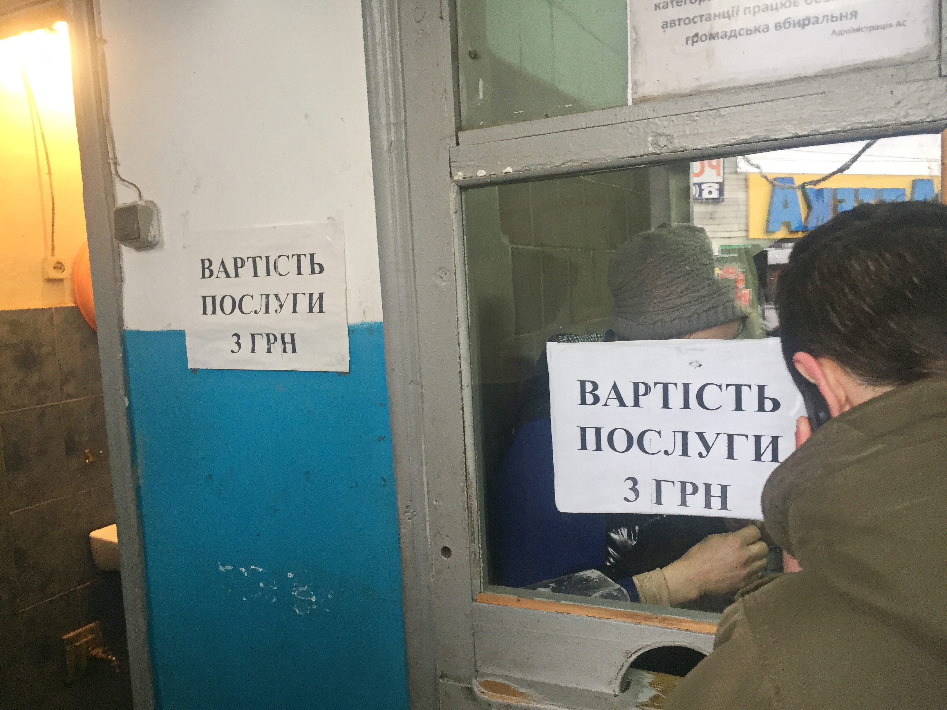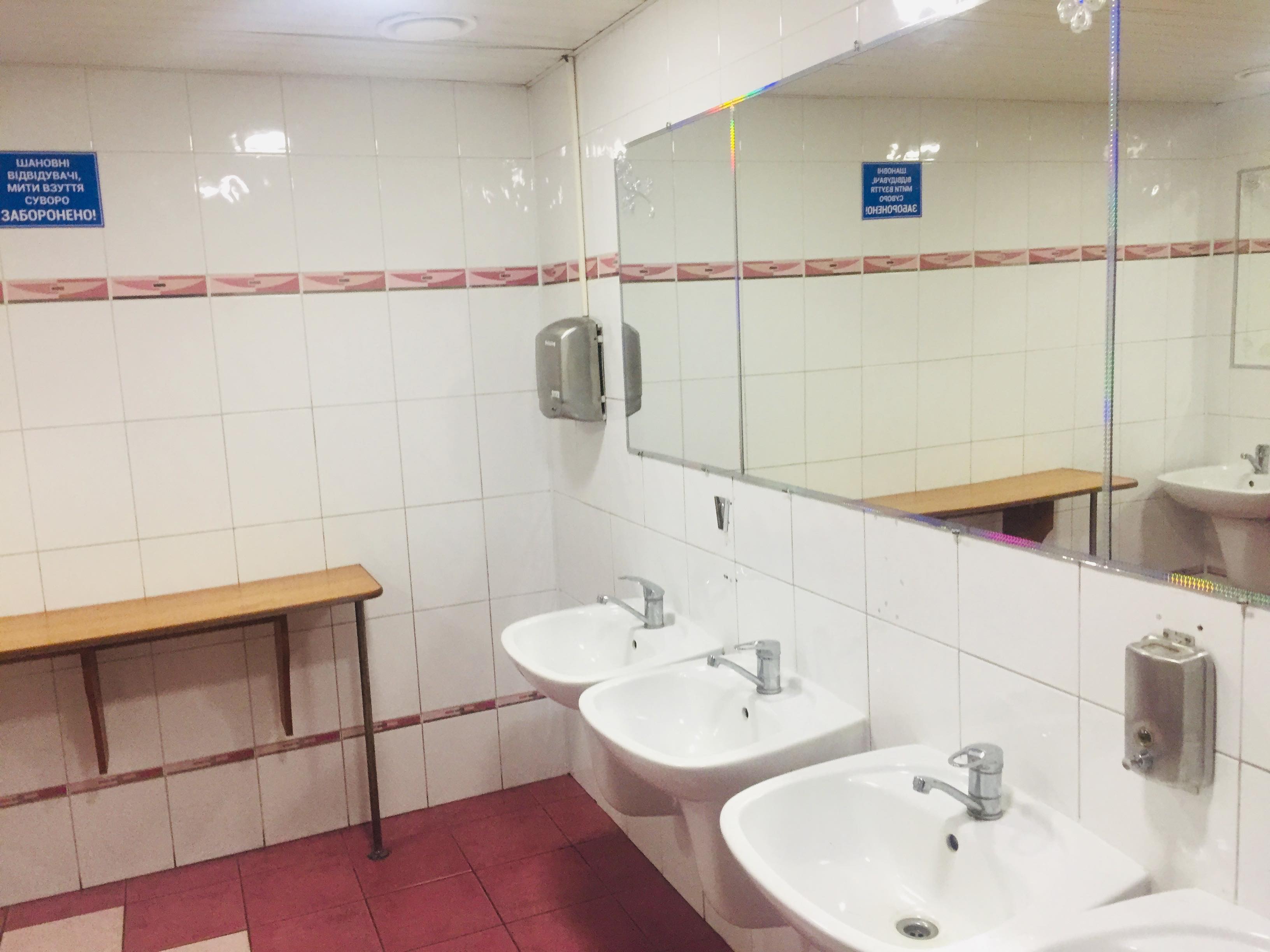 3 грн доведеться заплатити щоб справити потреби в громадському туалеті на Західному автовокзалі. Тут брудно та стоїть нестерпний сморід. Туалетний папір видають на вході порційно – маленькими шматочками кожному в руки. В вбиральні три кабінки, деякі з поламаними замками. Одна раковина та одне дзеркало, через що практично відсутня можливість привести себе до ладу. Кран зламаний, вода постійно тече, мила немає. На підлозі та батареях сушиться ганчір’я. Прохід захламлений пакетами, мішками, відрами, бутлями, сміттям. До цієї вбиральні неможливо зайти з валізами й небезпечно заходити з дітьми. Доступності для людей з інвалідністю немає.