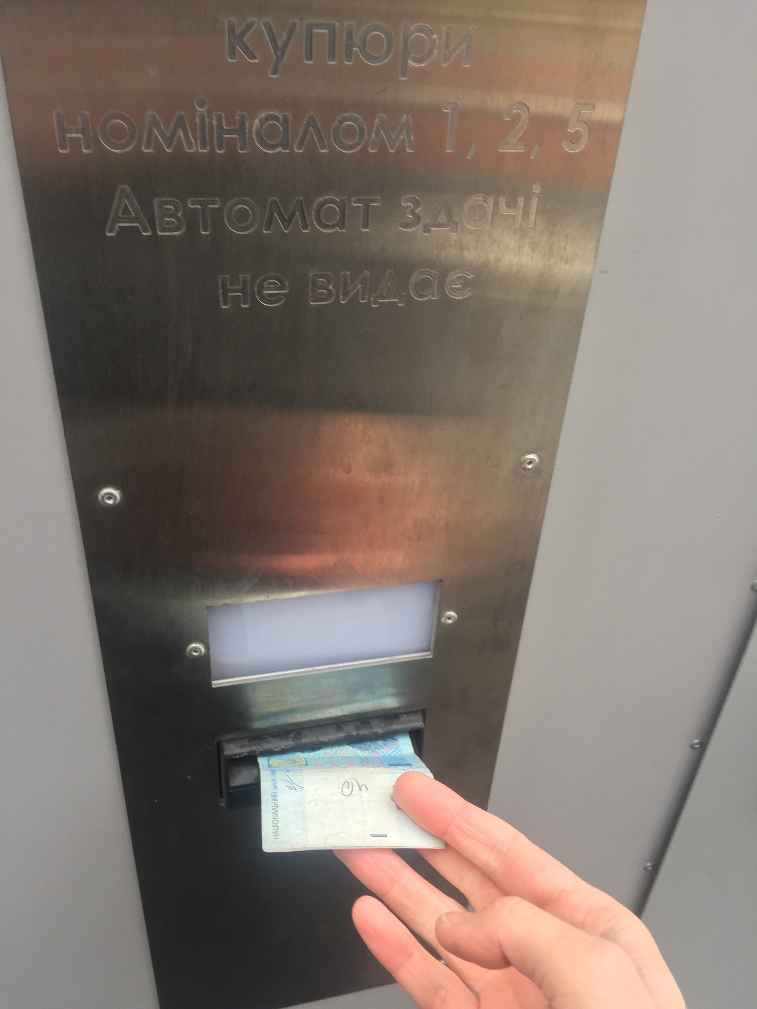 Тут послуга коштує 5 грн. Туалет недоступний для людей з ураженням опорно-рухового апарату та батьків з дитячими візочками. Туалетного паперу можна увірвати собі на вході, одразу за парапетом, в кабінках його немає. Вбиральня більш-менш чиста. Відчувається стійкий хімічний запах освіжувача повітря. Працюють електросушарки для рук, мило відсутнє, вода лише холодна.