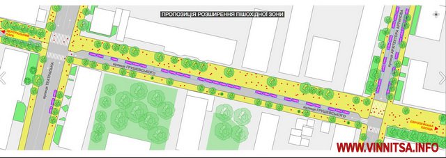 Агенція просторового розвитку Вінниці публікує ідеї зміни міського середовища. Однією з них є переосмислення вулиці Грушевського, що получає Європейську площу з Центральним парком. На цій території пропонують зробити односторонній рух, тим самим збільшивши пішохідну зону. Власне, сама ідея не нова.