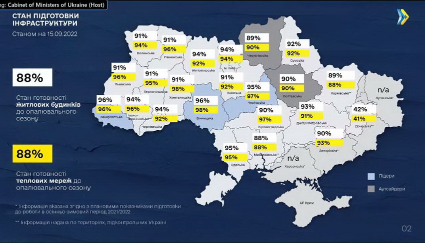 Також вона повідомила, що у громадах та комунальних підприємствах створено запаси твердого палива для всіх категорій споживачів – 91% від потреби на опалювальний сезон. Окрім того, громади запаслись генераторами - 290 одиниць різної потужності.